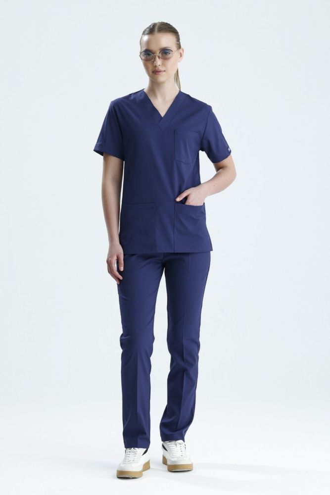 LACİVERT HEMŞİRE FORMASI LİKRALI SCRUBS TAKIM (PATRIOT BLUE)