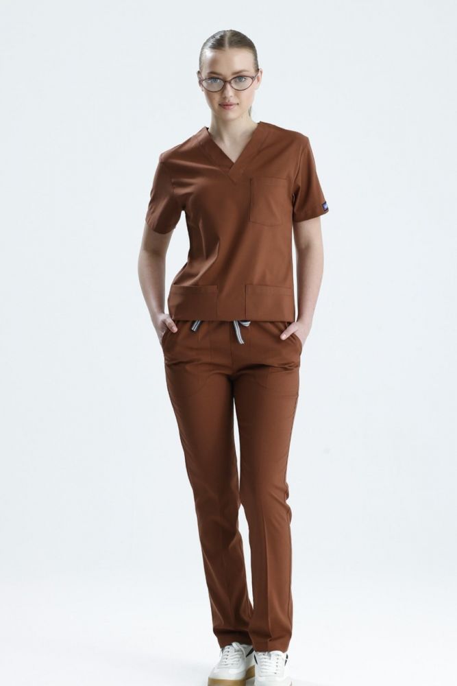 KAHVERENGİ HASTANE FORMASI LİKRALI SCRUBS TAKIM (FRIAR BROWN)