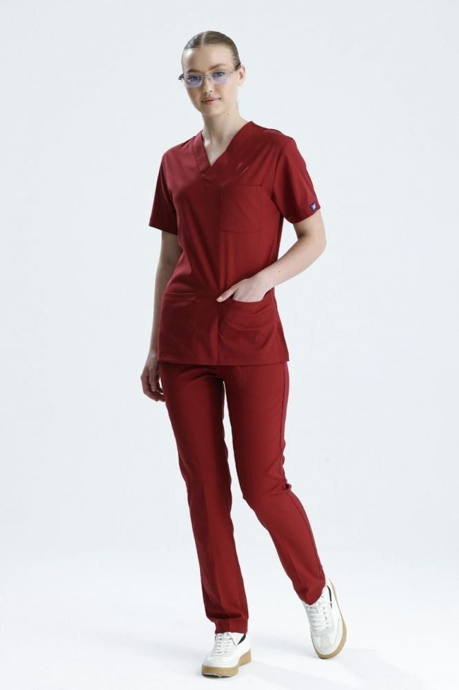 BORDO HASTANE FORMASI LİKRALI SCRUBS TAKIM (BIKING RED)