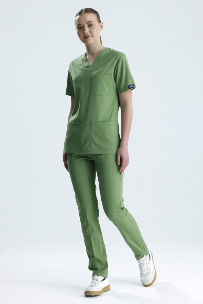 ÇİMEN YEŞİLİ ECZACI FORMASI LİKRALI SCRUBS TAKIM (GRASSHOPPER)