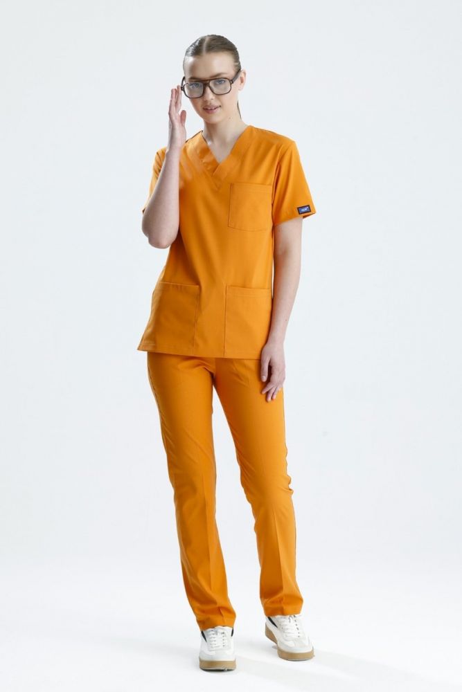 TURUNCU KLİNİK DESTEK İŞÇİ FORMASI LİKRALI SCRUBS TAKIM (ORANGE OCHRE)