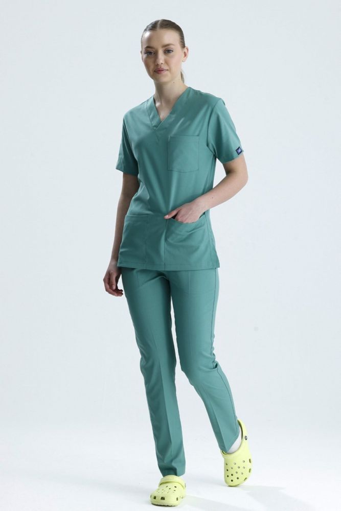 YEŞİL AMELİYATHANE PERSONEL FORMASI LİKRALI SCRUBS TAKIM (FROSTY SPRUCE)